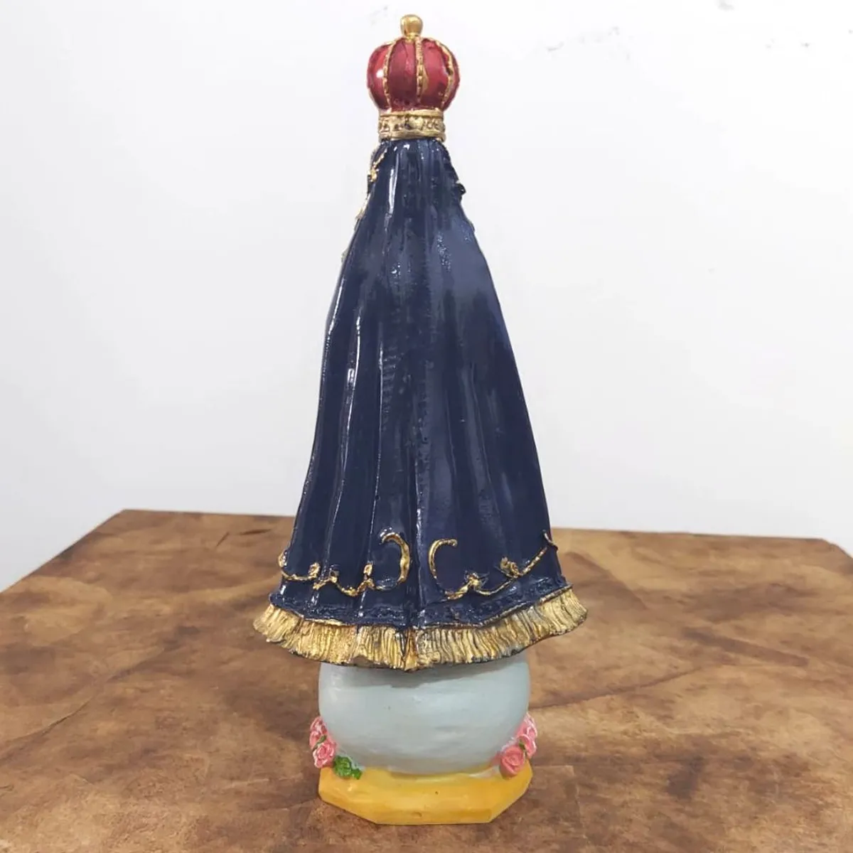 Possui 20 cm de altura e apresenta uma grande vantagem pois é mais resistente e durável se comparada às imagens de gesso. Ela pode ser exposta a agentes externos, como o sol e a poeira, sem desbotar e nem perder sua coloração original. Além disso, ela pode ser lavada que a tinta não sai.