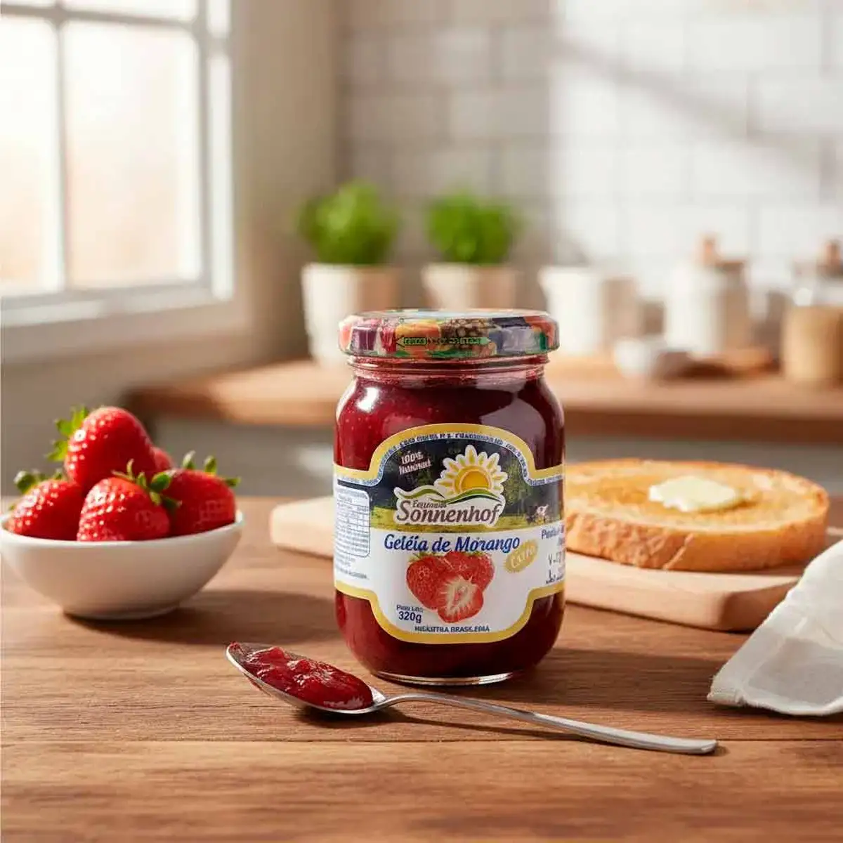 Ingredientes: Morango e açúcar. Não contém glúten.