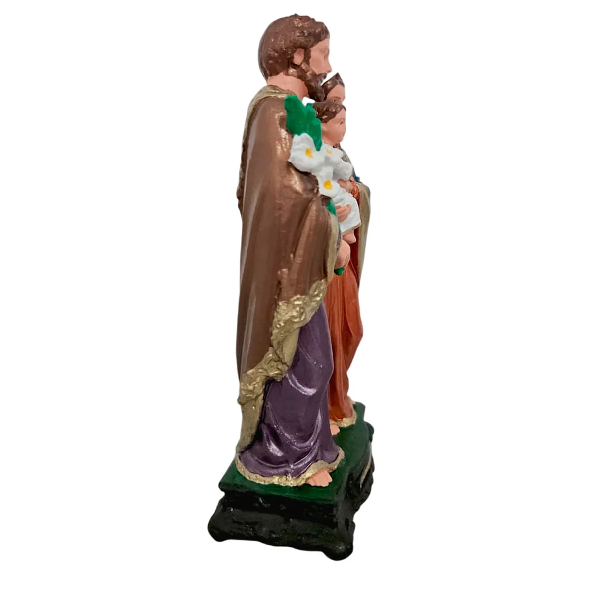 A Imagem da Sagrada Família tem tamanho médio de 20cm, o que é um tamanho ideal para decorar e para montar seu altarzinho em casa. É feita e pintada a mão, 100% de borracha e tem uma alta durabilidade e resistência. Como a Imagem é feita de borracha, ela é inquebrável mesmo se cair no chão. Então, você terá uma peça para a vida toda e perfeita para casas que possuem crianças ou pets.