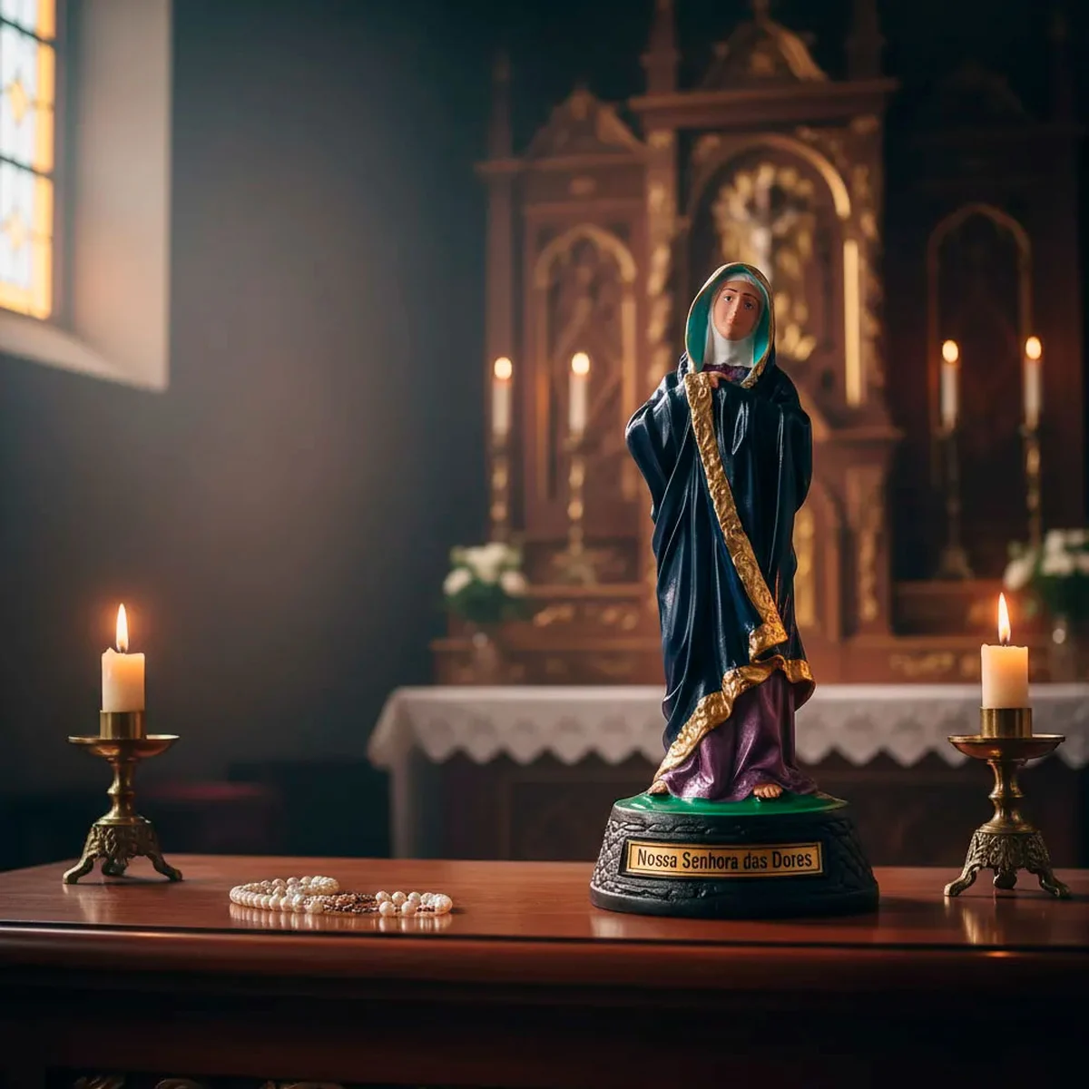 Já a Imagem de Nossa Senhora das Dores não representa nenhum local. Mas, sim, sete passagens da Bíblia que foram dolorosas para Maria. Por isso, na Imagem tem sete espadas sendo fincadas em seu coração.