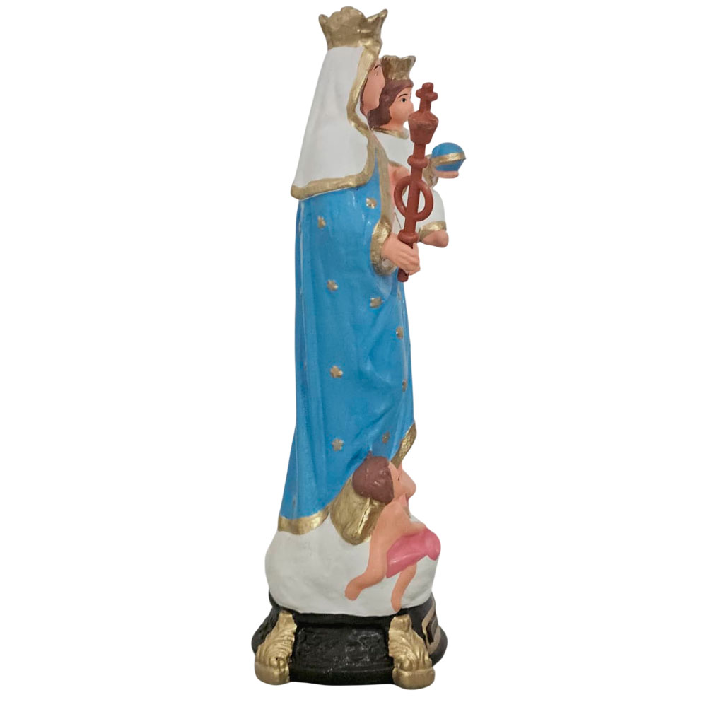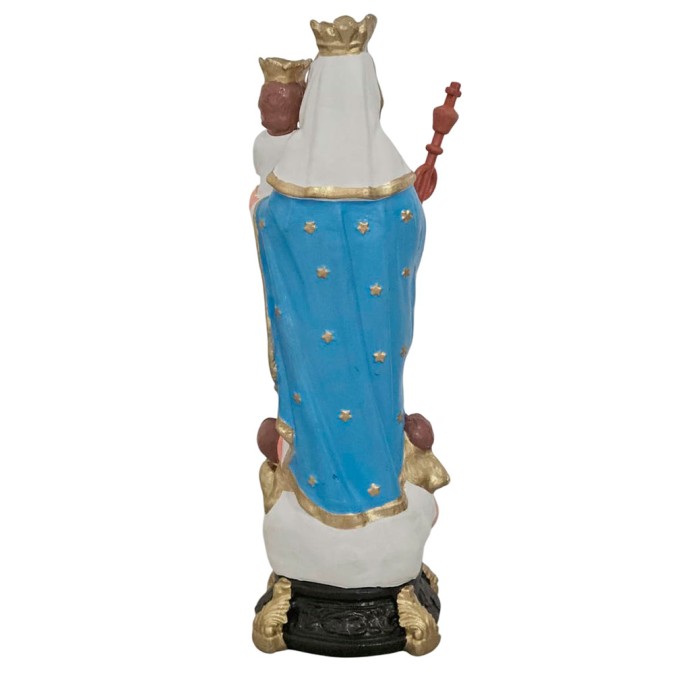 A Imagem de Nossa Senhora do Livramento é feita e pintada a mão, 100% de borracha e tem uma alta durabilidade e resistência. Como a Imagem é feita de borracha, ela é inquebrável mesmo se cair no chão. Então, você terá uma peça para a vida toda e perfeita para casas que possuem crianças ou pets que, frequentemente, derrubam as imagens.