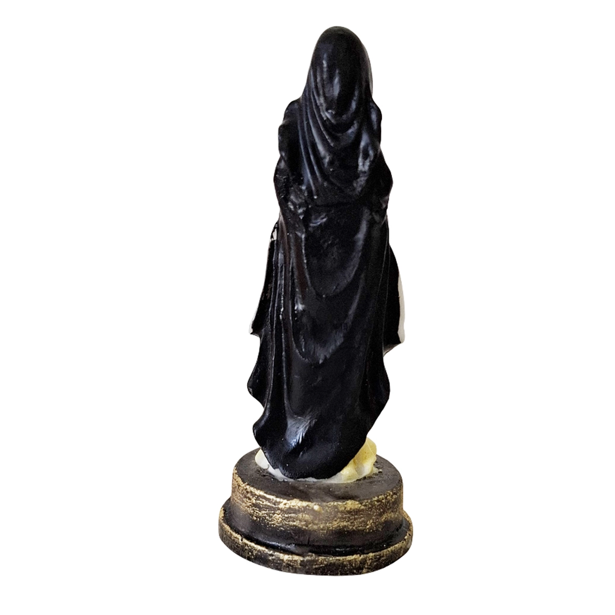O tamanho da imagem é pequeno, mas a qualidade é enorme e incomparável. A Resina é muito mais durável e resistente se comparado às imagens de gesso. Ela é resistente a pequenos impactos e é o material ideal para fixar a pintura das peças, de modo que elas não desbotem com o tempo.