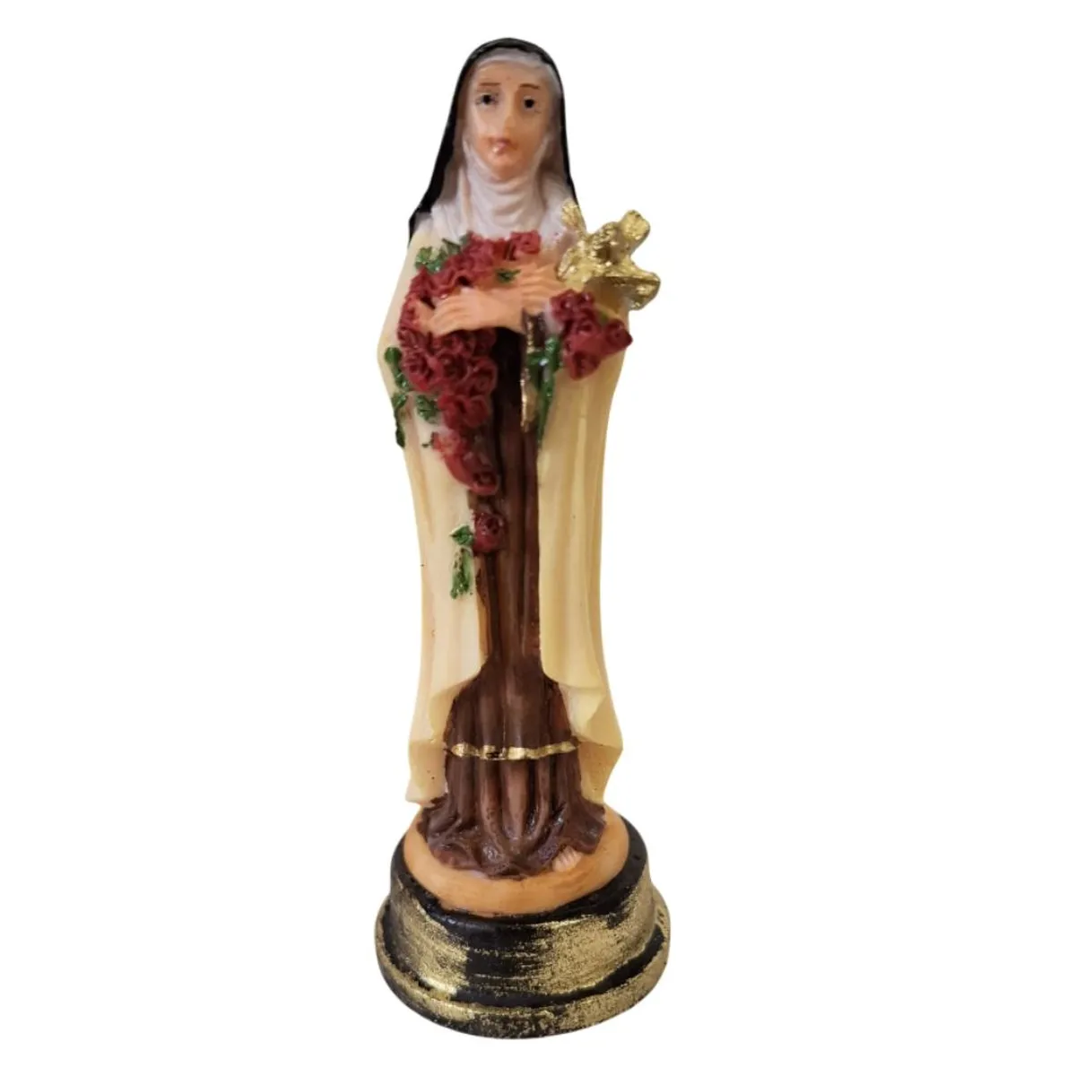Essa Imagem de Santa Terezinha tem tamanho pequeno de 9 cm, o que é ideal para ser colocado em pequenos altares sem ocupar muito espaço. É perfeita, até mesmo, para colecionar.