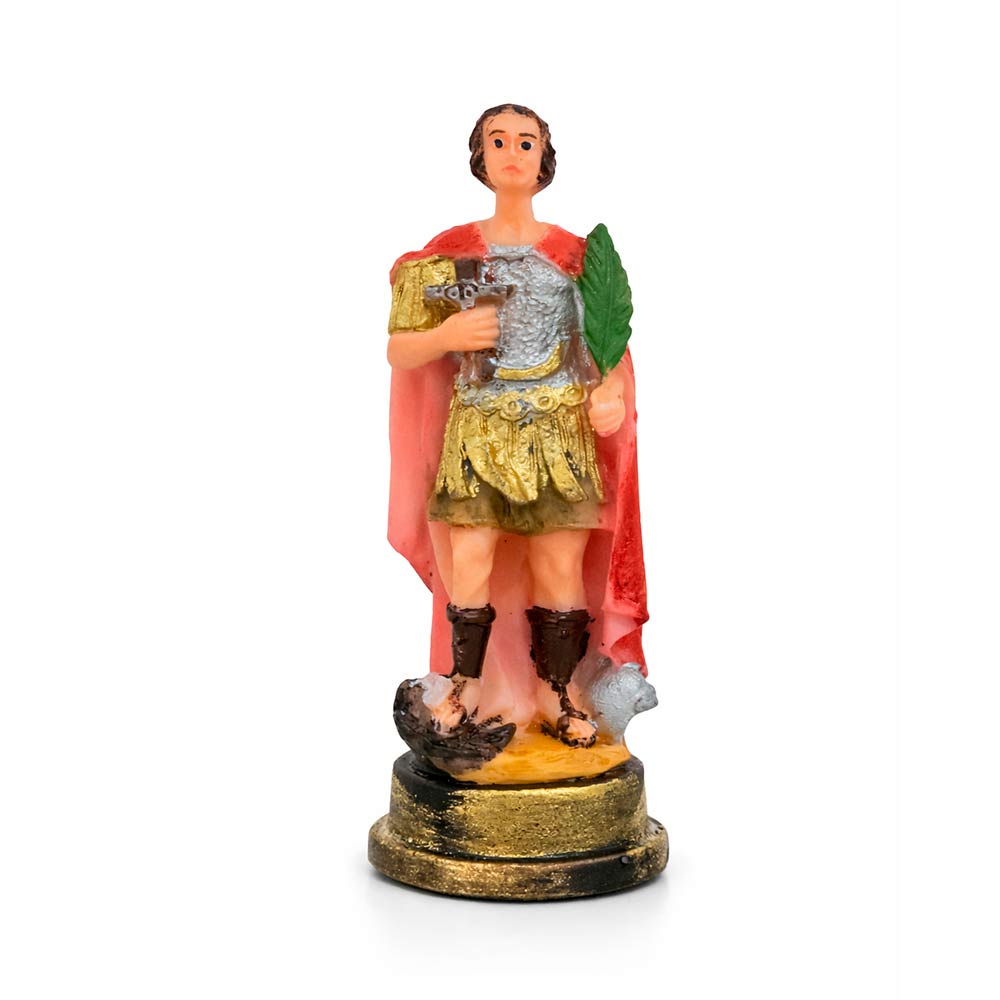Imagem de Santo Expedito em miniatura com 9 cm de altura e rica em detalhes minimalistas.