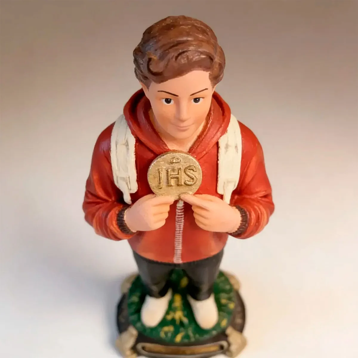 Nós utilizamos restos de borracha de outros produtos para produzir a Imagem de São Carlo Acutis. Com isso, conseguimos reutilizar materiais e reduzir o impacto que outras empresas causam no meio ambiente. Você terá uma peça sustentável e extremamente linda e bem feita.