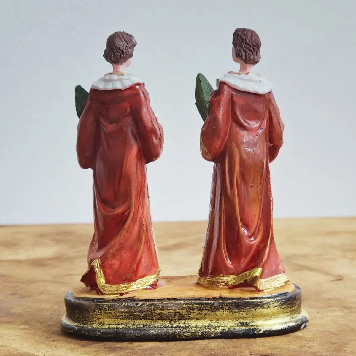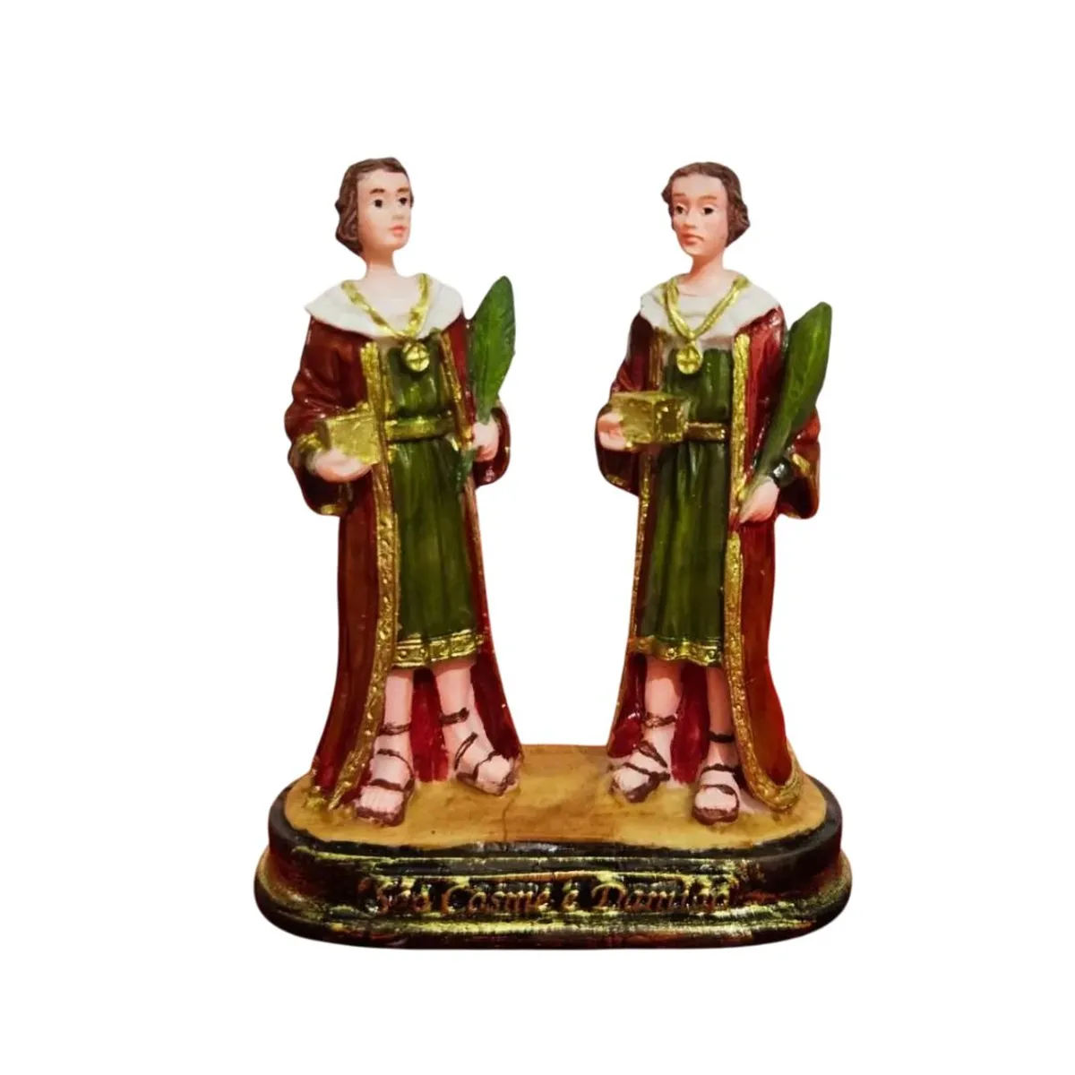 A Imagem de São Cosme e Damião é produzida a mão em Resina e a riqueza de detalhes impressiona, sendo também um ótimo presente para adultos ou para crianças.