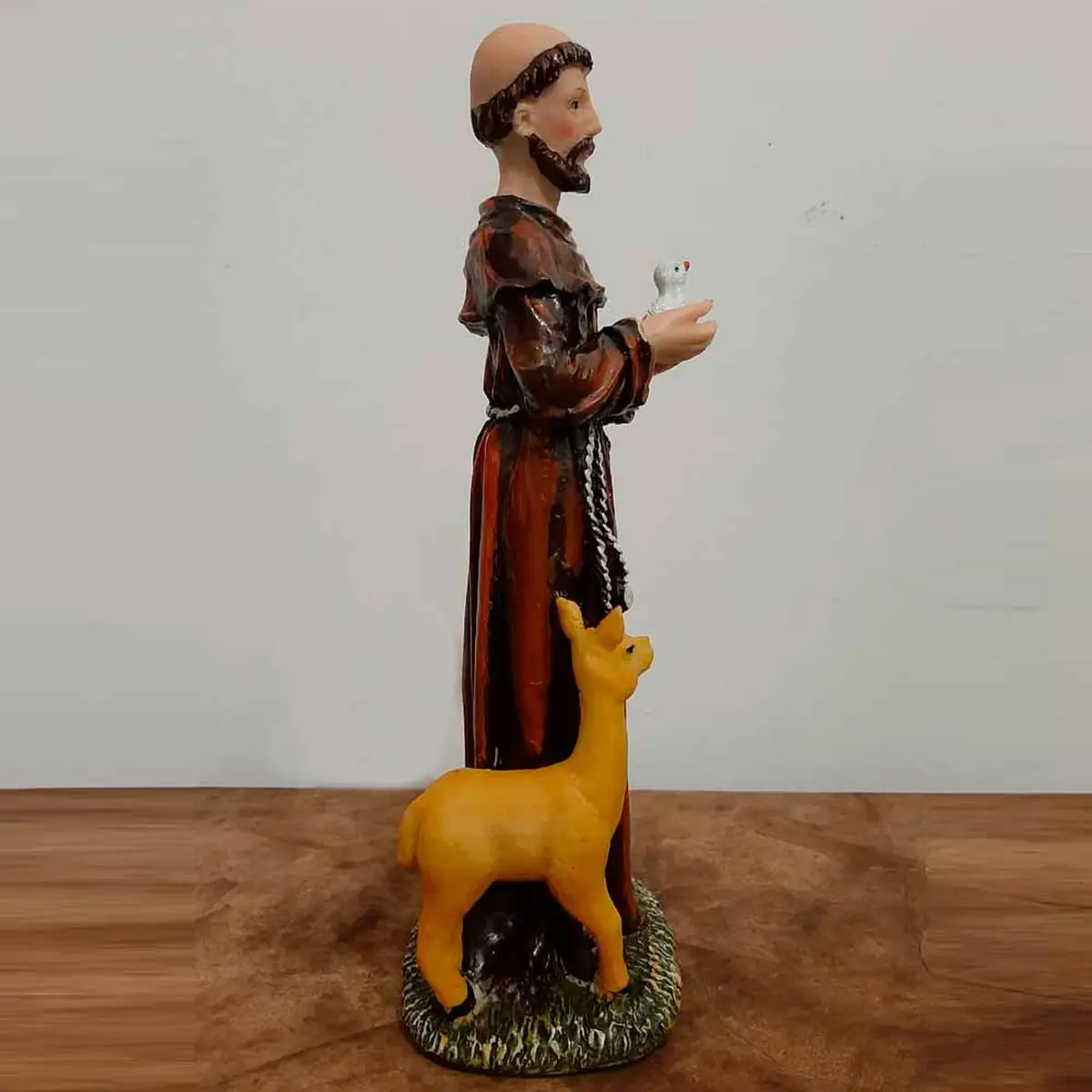 Imagem de São Francisco de Assis, o santo protetor dos animais, feita e pintada a mão. Escultura muito delicada e rica em detalhes.