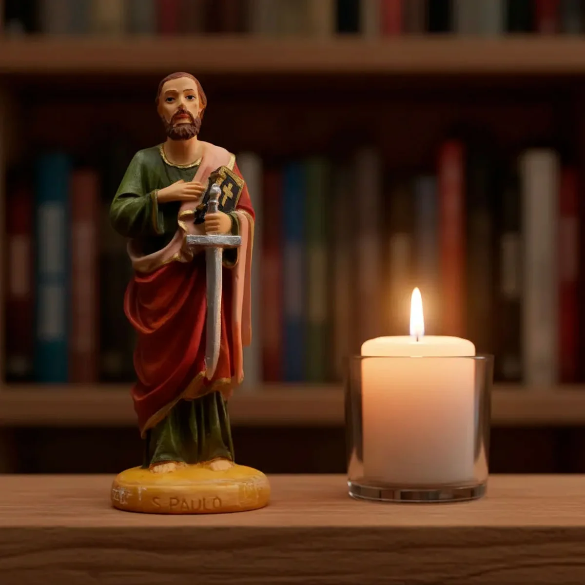 Imagem de São Paulo Apóstolo, toda trabalhada e pintada a mão, rica em pequenos e delicados detalhes que fazem da peça única. Mede 15 cm e é toda feita em Resina, resistente e de alta qualidade e durabilidade. Esse material é superior se comparado às imagens de gesso. Ela pode ser exposta a agentes externos, como o sol e a poeira, sem desbotar e nem perder sua coloração original. Além disso, pode ser lavada que a tinta não sai.