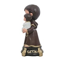A Imagem com Rosto Infantil de Santo Antônio, o protetor das coisas perdidas e dos casamentos, é toda trabalhada e pintada a mão, rica em detalhes e possui 15 cm de altura.