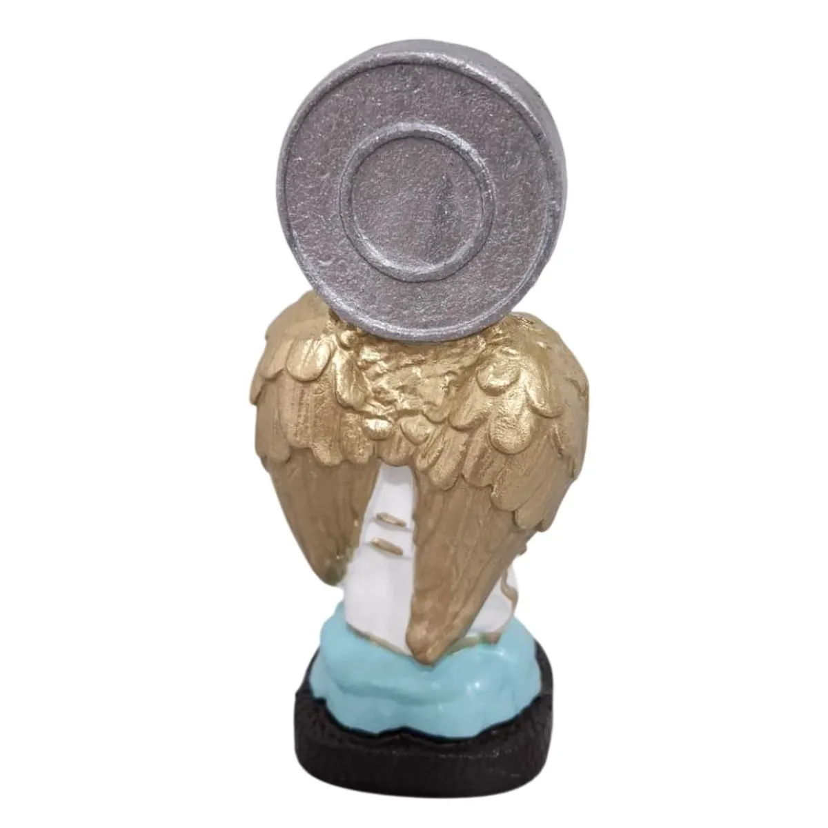 A Imagem de São Gabriel Arcanjo com Rosto Infantil é feita e pintada a mão e na base da peça vem escrito o nome do Arcanjo.