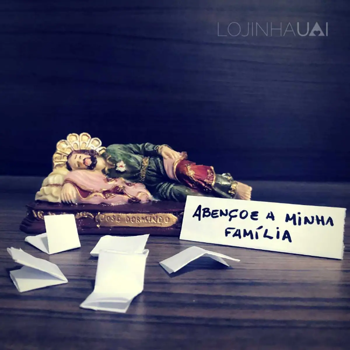 Diz que São José, quando dormindo, sonhava com Deus. Portanto, quando temos algum problema ou dificuldade, devemos escrever num papelzinho e deixar embaixo da imagem de São José Dormindo. Assim, ele vai sonhar e rezar por você.