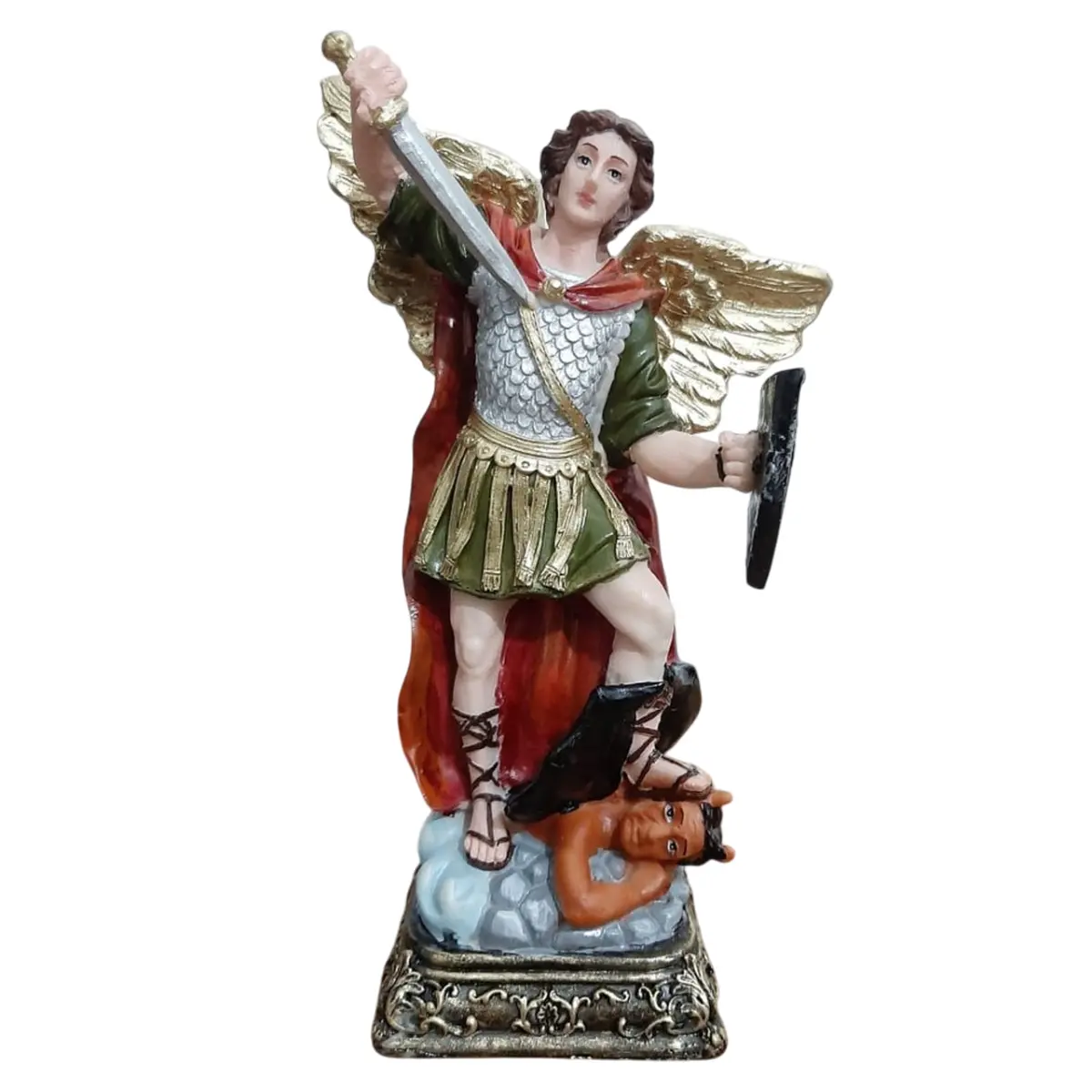 Importante: A Imagem de São Miguel Arcanjo em Resina é feita a mão e, por isso, pode sofrer pequenas variações de tamanho em aproximadamente 2 cm.