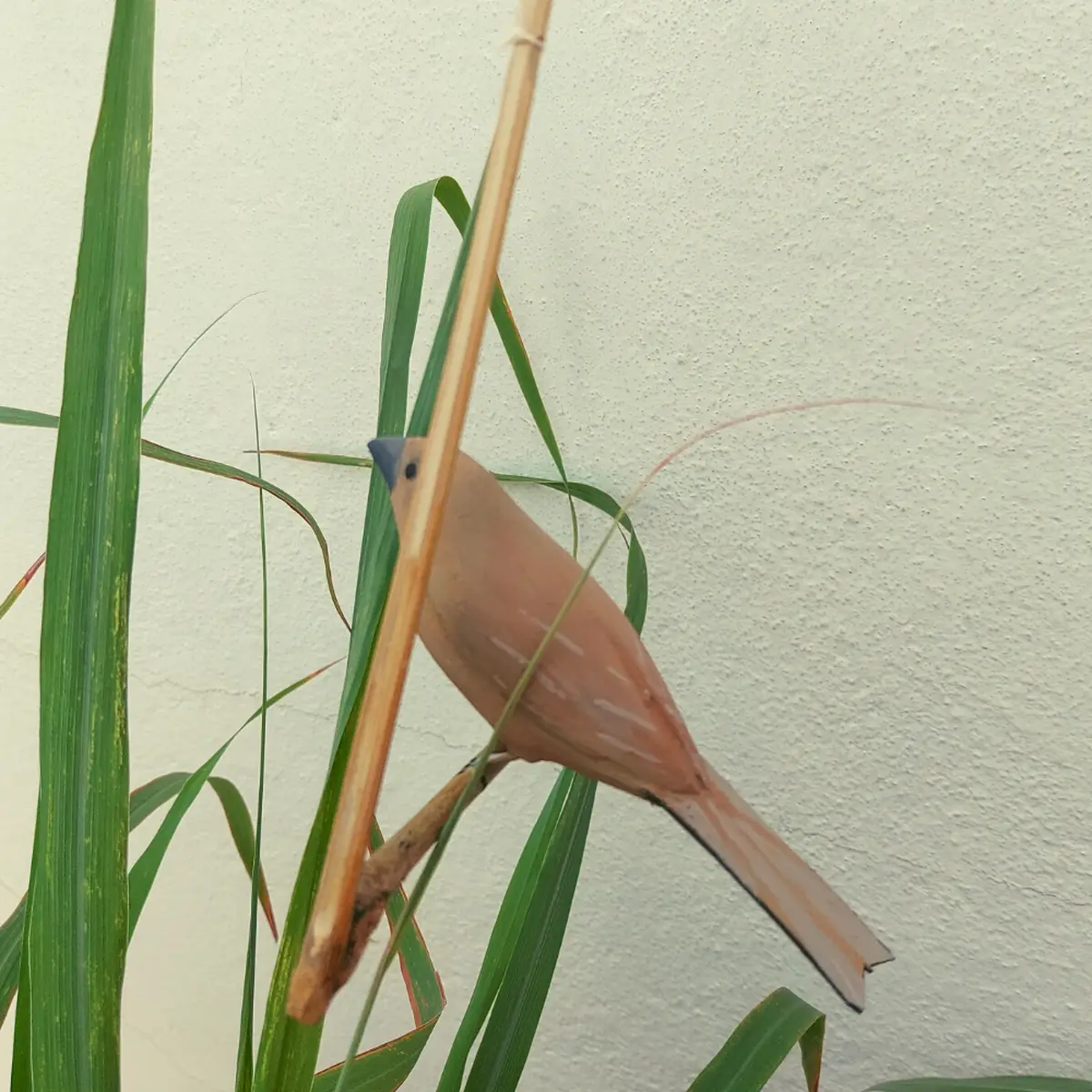 É uma peça esculpida à mão e tem o tamanho mais próximo possível do pássaro real. Já acompanha cordinha de barbante, pronto para pendurar.