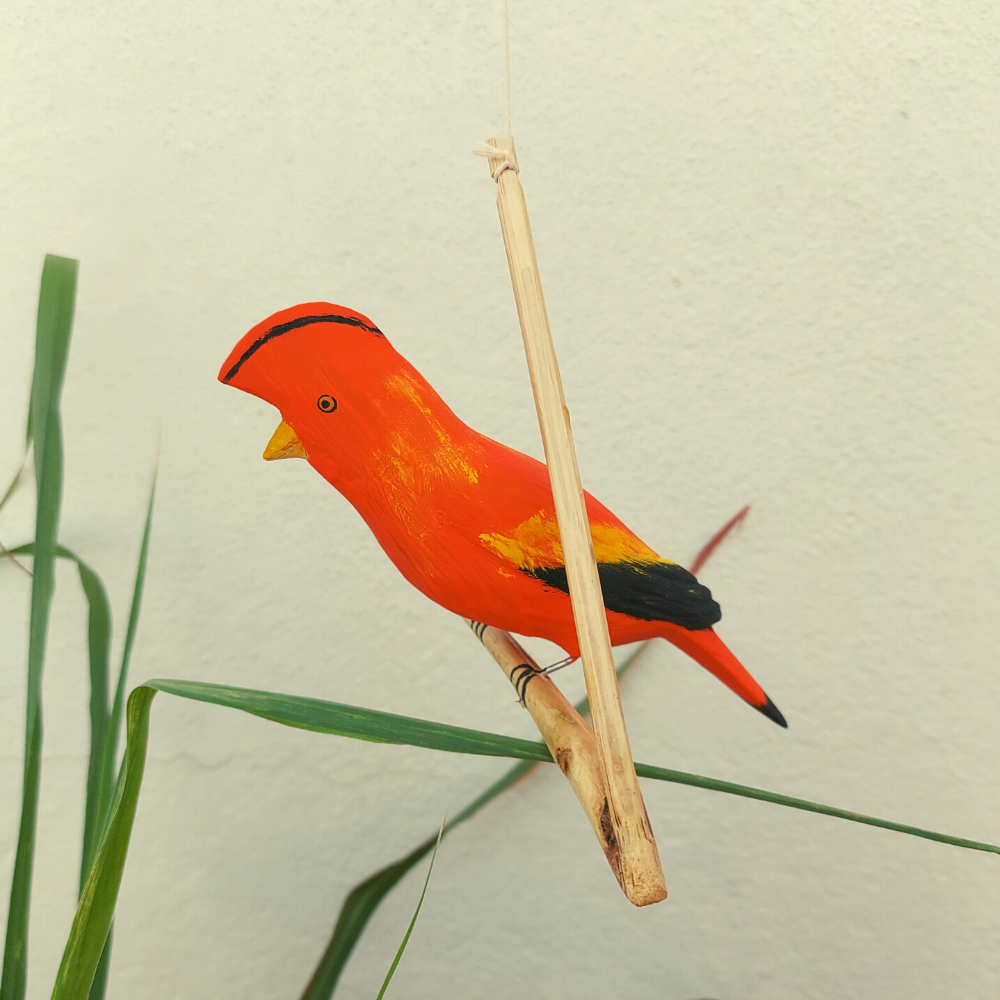 Todo feito e pintado a mão com exclusividade pela Lojinha Uai, o Pássaro de Madeira Galo da Serra é uma peça bem leve e seu tamanho se assemelha ao pássaro original na natureza.