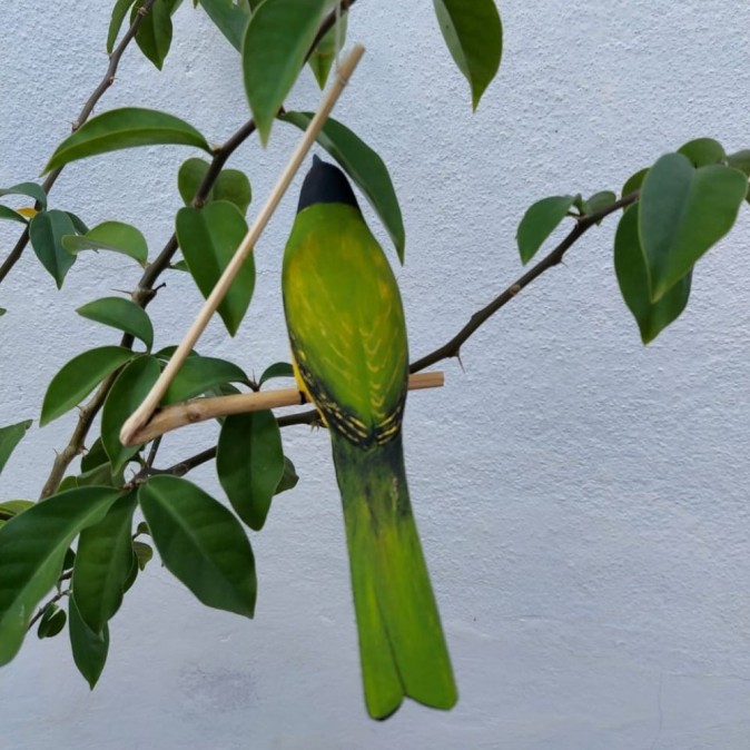 Tamanho aproximado do pássaro: 18 x 10 cm