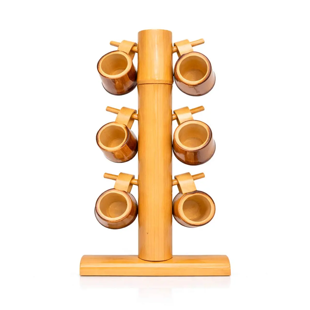 Jogo com Suporte e 6 canecas de Bambu para Cachaça - 8 ml -